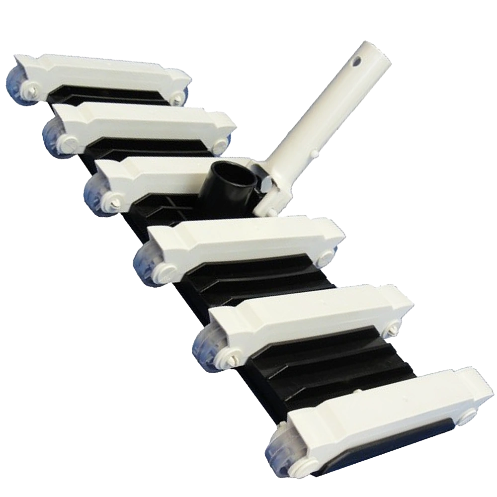 La Aspiradora Manual de 12 Ruedas estándar es una de las mejores alternativas para quienes buscan una solución eficiente y económica para piscinas medianas o grandes. Su diseño de 48 cm de ancho permite cubrir un área mayor con cada pasada, lo que reduce significativamente el tiempo de limpieza.
