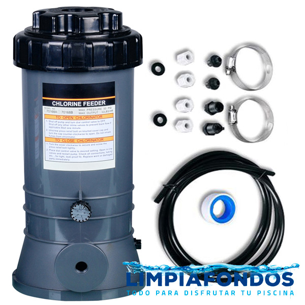 Tanto el clorador fuera de línea de 2 y 4 kg incluyen el kit completo de accesorios para instalación.