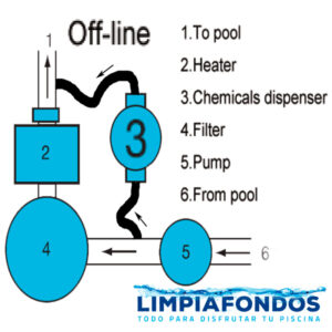 – Conectar en el tubo que va desde la bomba al filtro (alta presión) a la entrada del clorador