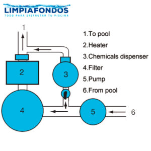 La instalación es del tipo Fuera de Línea, por By Pass u Off-Line, instalándolo en el tubo de retorno, después del filtro.