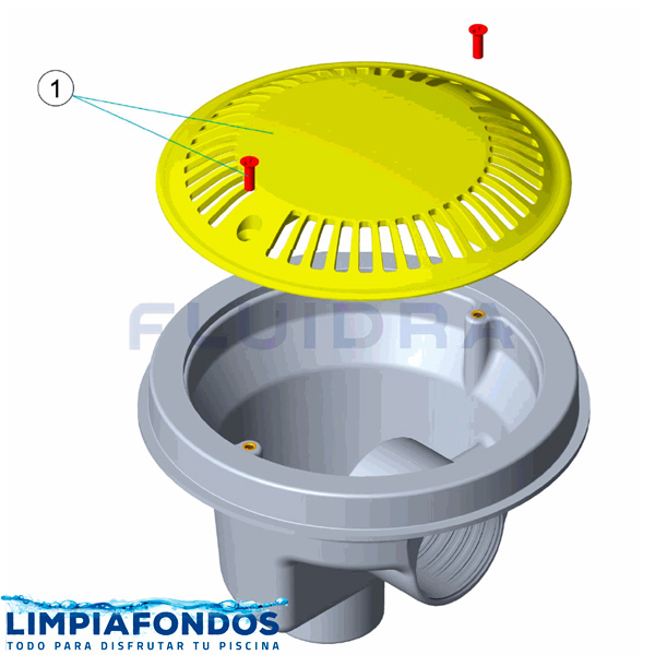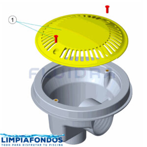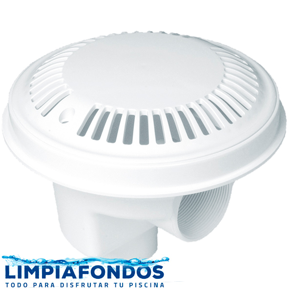 Dreno o sumidero circular de 20 cm de diámetro fabricado en ABS blanco, con rejilla Antivortex con tratamiento UV en la rejilla.