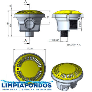 Salida lateral de 2″ y salida inferior de 1 1/2″
