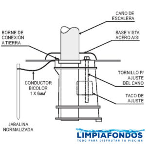 Para ajustarse a la norma, considerar las profundidades mínimas recomendadas, ya que el tubo de la escalera debe topar el fondo de la piscina para que el peldaño esté a 20cm del fondo.