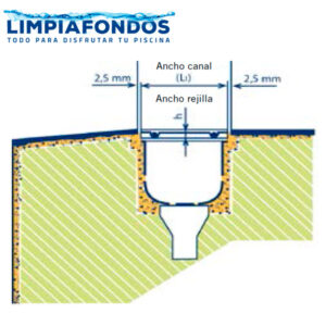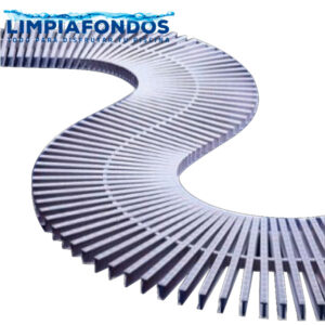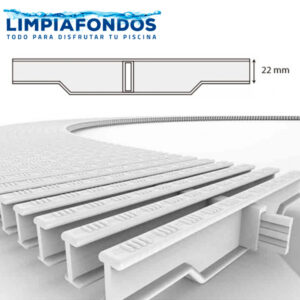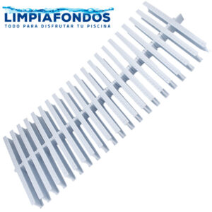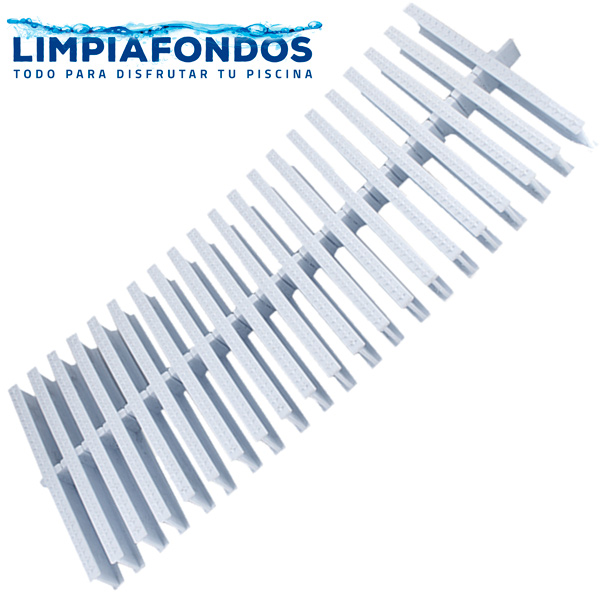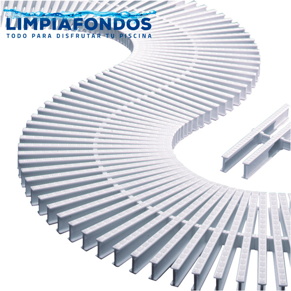 Rejilla perimetral compuesta por varillas de polipropileno Blanco. De fácil instalación y limpieza, antideslizante y agradable a la pisada. Resistente a agentes químicos.