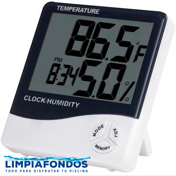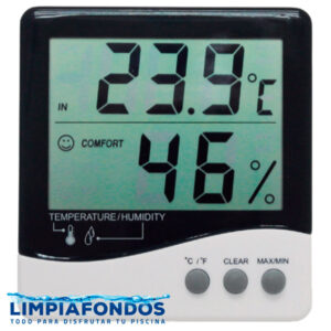 Termómetro e Higrómetro digital, para medir los parámetros ambientales. Utiliza un sensor interno, por lo que el termómetro-higrómetro debe ser ubicado en el lugar o espacio específico donde deseamos medir la temperatura y humedad.