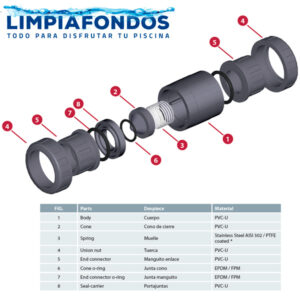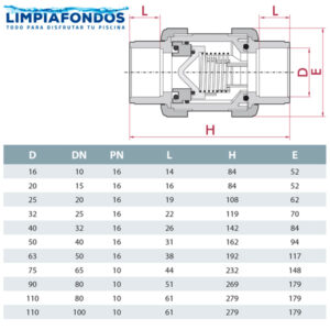 Estas válvulas de retención cuentan con doble unión americana, con un doble enlace que facilita la instalación, el montaje y el mantenimiento mediante enlaces con dos tuercas.