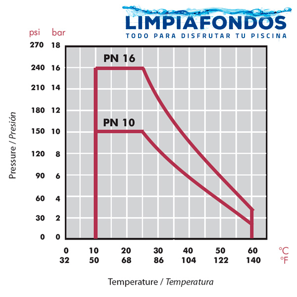 – PN 16 (240 psi): Desde un diámetro de 16mm a 63 mm, D16 – D63, ( ⅜” – 2”)