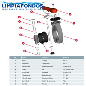 Las válvulas mariposa están construidas en PVC-U, HDPE / PTFE y PP , la junta de la compuerta está fabricada en EPDM / FPM.